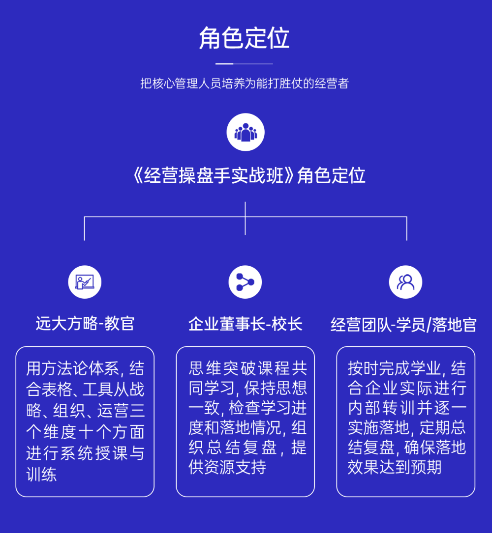 用系統(tǒng)、實(shí)效、落地的課程,把核心管理人員培養(yǎng)為能打勝仗的經(jīng)營者