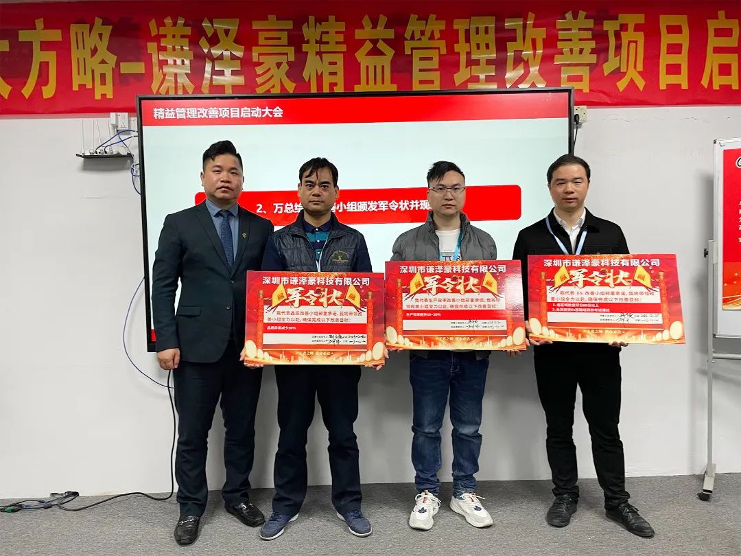 項(xiàng)目組老師介紹了此次項(xiàng)目的重點(diǎn)工作,第一個(gè)是6S管理,打造一流精益現(xiàn)場(chǎng),進(jìn)行參觀通道打造,充分展示謙澤豪的實(shí)力;第二是提升產(chǎn)品品質(zhì),提升客戶(hù)滿(mǎn)意度;第三個(gè)是要提升整體效率,提高企業(yè)效益。第四個(gè)是要聚焦數(shù)據(jù),每天復(fù)盤(pán),每周復(fù)盤(pán),每月復(fù)盤(pán),復(fù)盤(pán)是總結(jié)過(guò)去經(jīng)驗(yàn)與不足,為下一階段的工作提供充分有力的依據(jù)。同時(shí)強(qiáng)調(diào)老師和謙澤豪是一個(gè)共同的團(tuán)隊(duì),大家必須是一條心,一個(gè)目標(biāo),共同奮斗,助力謙澤豪再上新臺(tái)階。