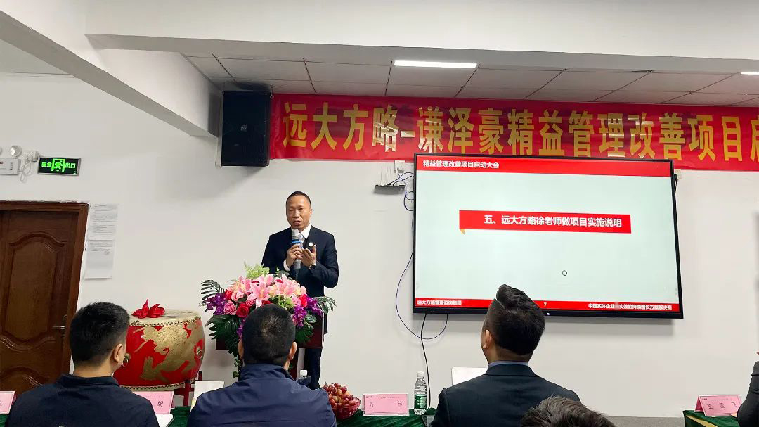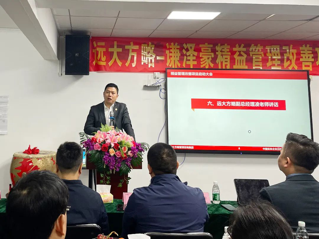 會(huì)議上,項(xiàng)目組老師首先向謙澤豪管理團(tuán)隊(duì)對(duì)遠(yuǎn)大方略的信任表示感謝,企業(yè)經(jīng)營(yíng)的本質(zhì)是以客戶(hù)為中心,圍繞客戶(hù)價(jià)值去建團(tuán)隊(duì)、建流程、搭體系,為客戶(hù)創(chuàng)造更大價(jià)值才能留住客戶(hù),這也是此次企業(yè)開(kāi)啟項(xiàng)目的核心。遠(yuǎn)大方略項(xiàng)目總監(jiān)強(qiáng)調(diào)了此次項(xiàng)目的兩個(gè)重要思想,一是全員參與,所有部門(mén)所有員工都要參與此次改善;第二個(gè)就是要持續(xù)改善,從量變到質(zhì)變,它有一個(gè)過(guò)程,需要我們持續(xù)做下去才會(huì)發(fā)生質(zhì)的改變。