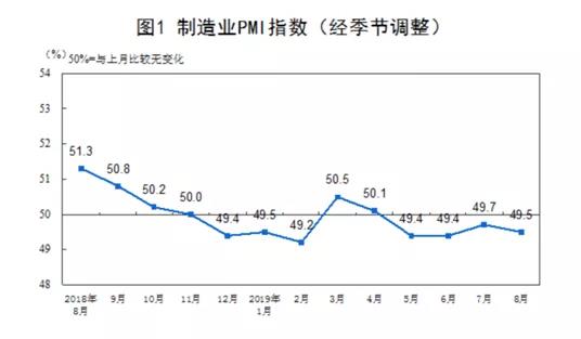 根據國家統(tǒng)計局8月31日公布的數據,8月份制造業(yè)PMI為49.5%,位于臨界點之下,低于上月0.2個百分點。