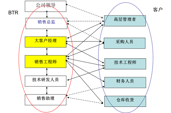 針對不同客戶,采用靈活團(tuán)隊組合方式開展銷售服務(wù)活動,以大客戶為例,鴻寶科技銷售服務(wù)組織模式如下: