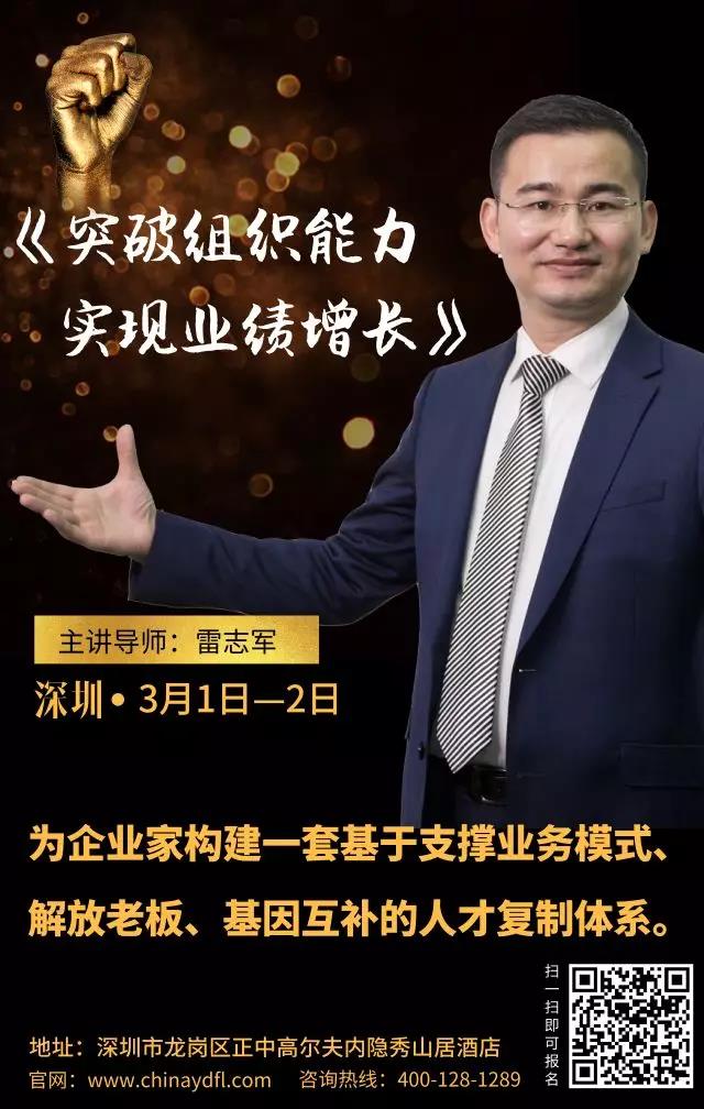 如果您認(rèn)可“先人后事”的理念,或者想進(jìn)一步了解企業(yè)核心圈構(gòu)建、人才營(yíng)盤(pán)打造、人才生產(chǎn)線建立等相關(guān)內(nèi)容,歡迎參加遠(yuǎn)大方略聯(lián)合創(chuàng)始人雷志軍導(dǎo)師3月1日、2日在深圳的《突破組織能力,實(shí)現(xiàn)業(yè)績(jī)?cè)鲩L(zhǎng)》的組織突破專題課,我們一起探討,相互交流,期待您的光臨。