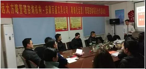 2019年4月,安徽百盛文具有限公司(以下簡(jiǎn)稱“百盛文具”)攜手遠(yuǎn)大方略遠(yuǎn)大方略管理咨詢公司啟動(dòng)《精細(xì)化運(yùn)營(yíng)》管理改善項(xiàng)目。遠(yuǎn)大方略項(xiàng)目總監(jiān)程波老師,項(xiàng)目組長(zhǎng)唐光輝老師入駐百盛文具。通過與百盛文具公司核心團(tuán)隊(duì)的探討,本次咨詢項(xiàng)目主要圍繞會(huì)議模式變革、提升庫(kù)存管理水平、組織建設(shè)、交付系統(tǒng)、效率提升等內(nèi)容展開,達(dá)到促進(jìn)團(tuán)隊(duì)成長(zhǎng)、降本增效的管理變革目的。