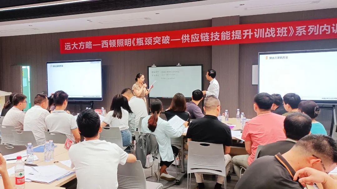降成本,提效益,惠州市西頓工業(yè)發(fā)展有限公司(以下簡稱“西頓照明”)特邀遠大方略賦能企業(yè),開展《瓶頸突破-供應(yīng)鏈技能提升訓戰(zhàn)班》項目制系列訓戰(zhàn)培訓,全面提升供應(yīng)鏈管理者專業(yè)素養(yǎng)和綜合能力,優(yōu)化供應(yīng)鏈體系,提升供應(yīng)鏈整體效率。