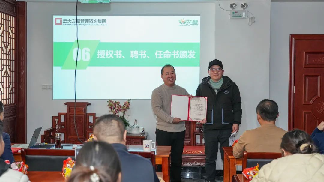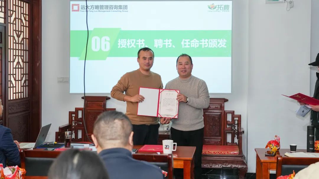 為了進(jìn)一步加強(qiáng)項(xiàng)目組的權(quán)威性和執(zhí)行力,拓豐樸道領(lǐng)導(dǎo)為遠(yuǎn)大方略項(xiàng)目組頒發(fā)了授權(quán)書,授予老師項(xiàng)目管理權(quán),同時,還為拓豐樸道項(xiàng)目組成員頒發(fā)任命書,明確了各成員的職責(zé)與使命,進(jìn)一步強(qiáng)化了項(xiàng)目團(tuán)隊(duì)的執(zhí)行力和領(lǐng)導(dǎo)力,為此次項(xiàng)目改善提供了有力的組織保障。